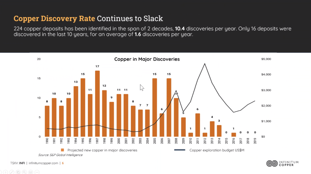 Indeed, it is. We’re in for a rude awakening. The average rate of discovery for copper deposits has fallen dramatically in the last decade.