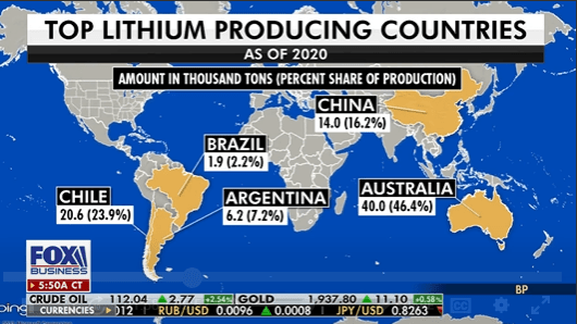 Bloomberg forecasted massive growth in both lithium mining & refining capacity for 2025, especially in China. Compare these figures with total production in 2020 (82,500 metric tons*) and 2021 (100,000 metric tons*), as noted by the USGS earlier this year, which converted into lithium carbonate equivalent equals 439kt and 532kt.