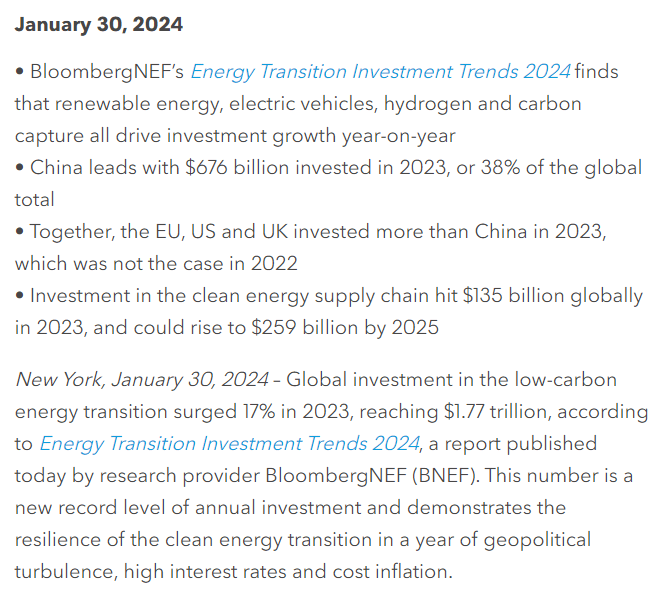 Investment in the energy transition beat another record in 2023, up 17% on the previous year.