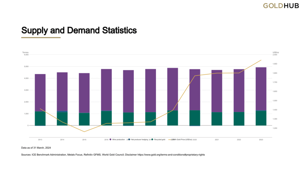 Gold production globally in 2023 was over 3,000t. China, Australia and Russia were top 3.
