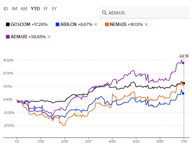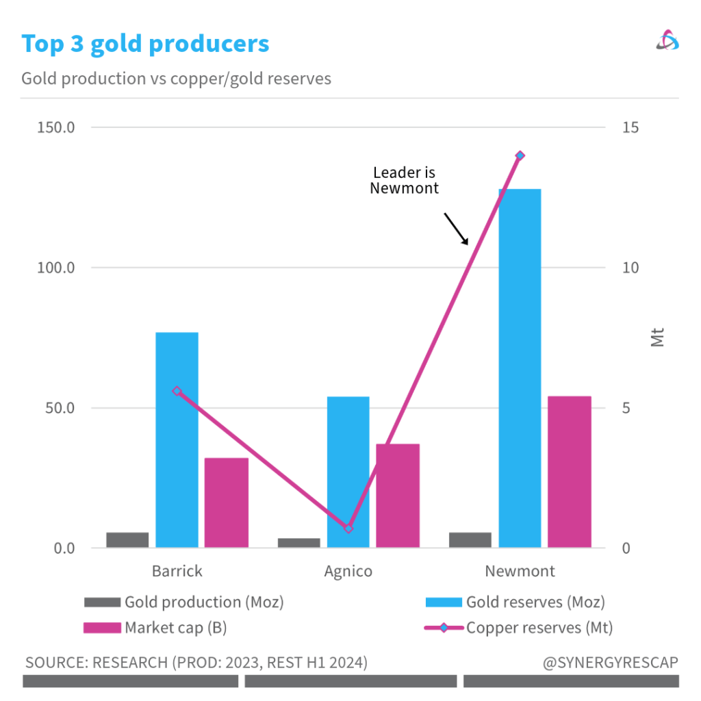 Newmont, Agnico and Barrick are the world’s largest gold miners.