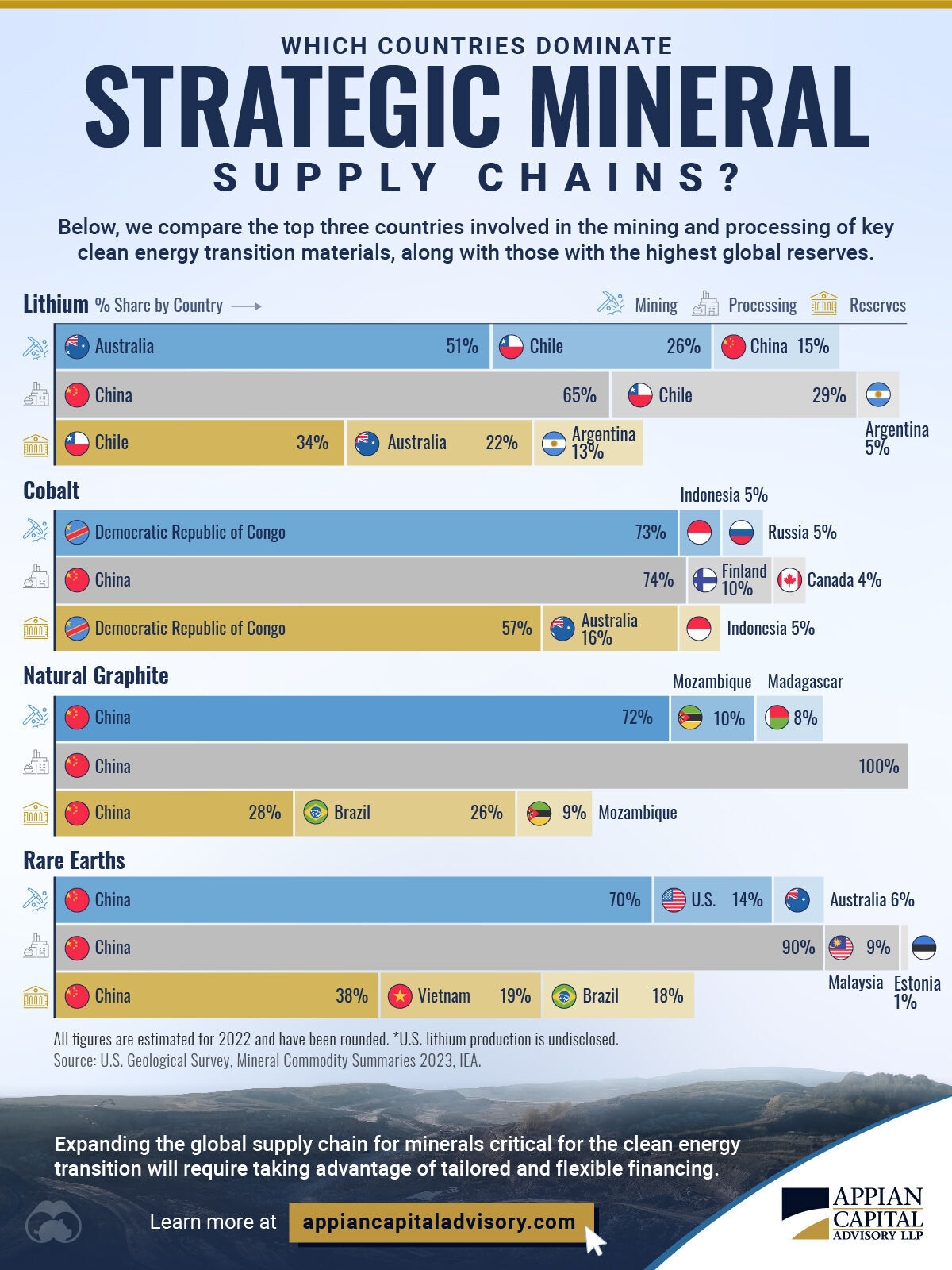 Lithium has a more diversified footprint thankfully (plus variety in sources), but still strategically complex and not devoid of issues (we covered some of these as well as a potential solution for lithium in this recent newsletter).
