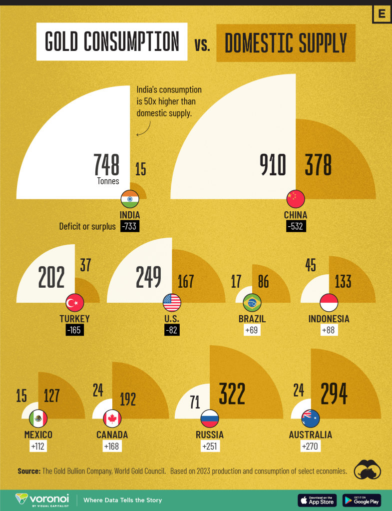 In addition to central banks, more gold is flowing from gold-producing countries to emerging economies.