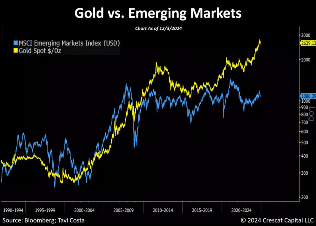 On a more broad perspective, Crescat Capital sees a ‘secular bull market’. They also point out opportunities in relation to emerging markets which seem ‘on the brink of a major catch-up’.