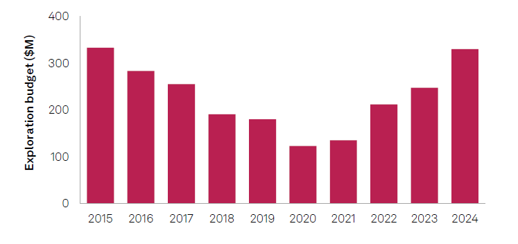 To start us off, last year global exploration investment reached $12.5 billion in 2024*, a 3% decrease.