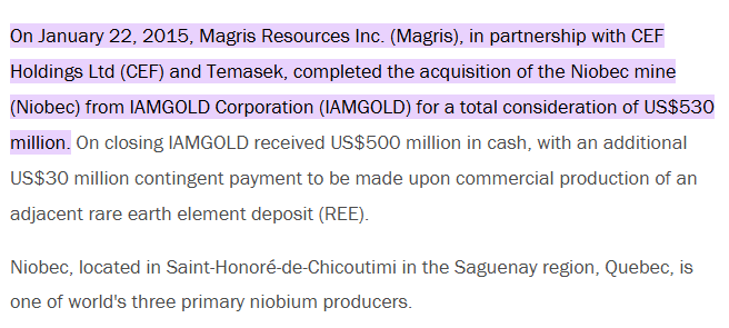 - Grades ~0.5-0.7% Nb2O5