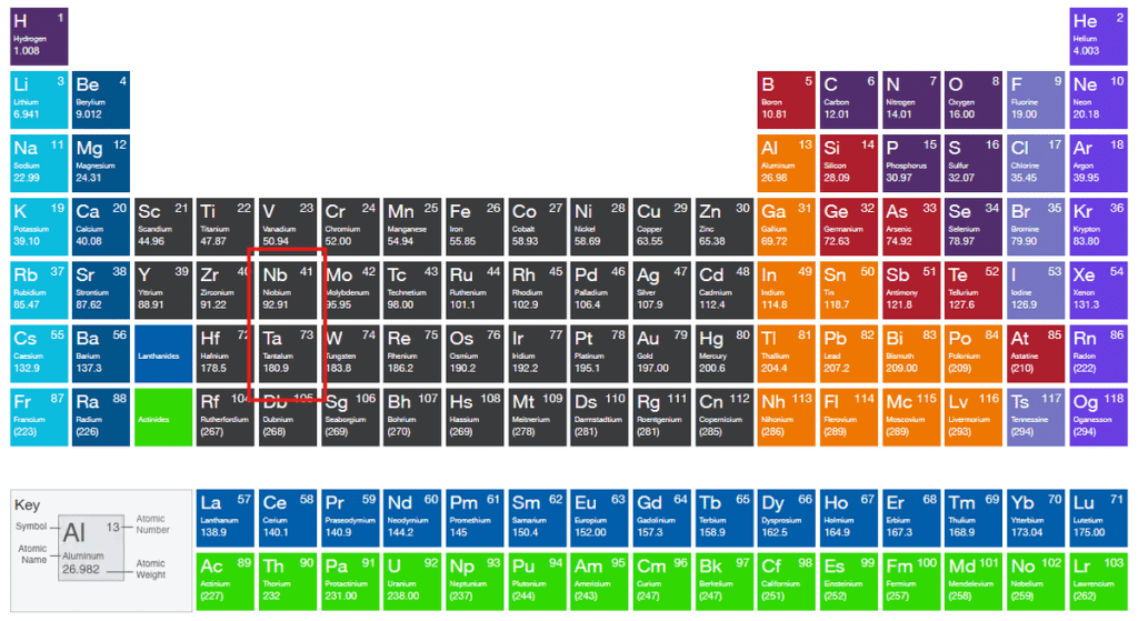 In the periodic table, niobium lives directly above it.