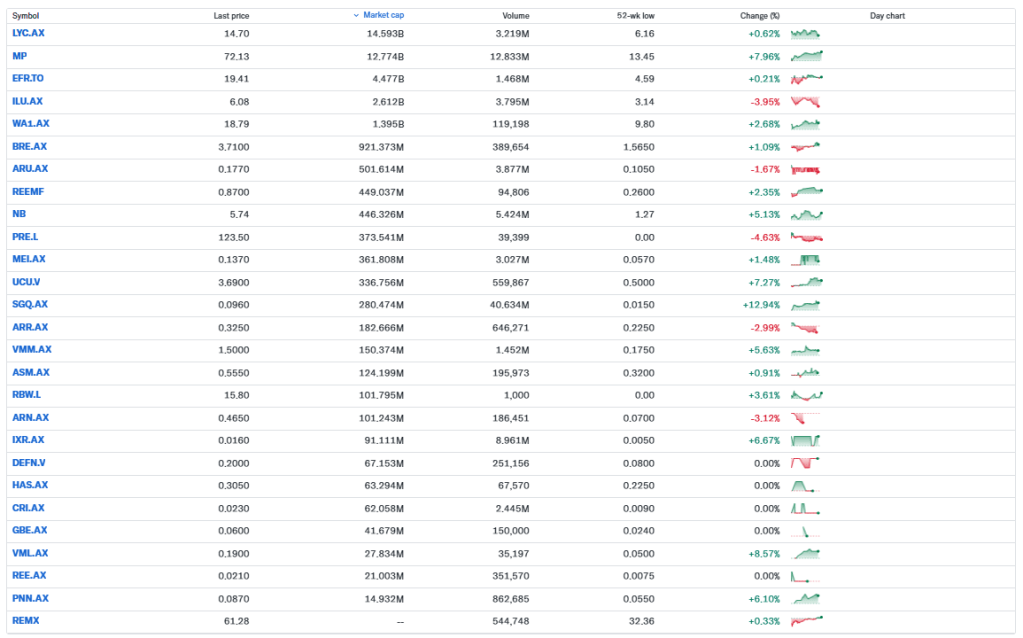 1) $LYC Lynas is the largest ASX-listed peer at A$14bn.