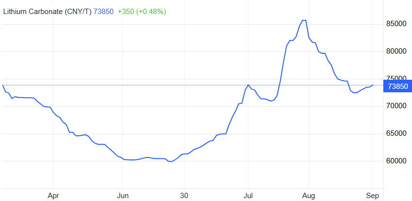 - Lithium sentiment mixed, prices volatile: Lithium carbonate prices rebounded slightly this week to CNY 73,500/t ($10,575/t), but remain down 14% month-on-month. CATL’s Jiangxi mine is reportedly restarting, UBS and Benchmark see upside risk for 2026–2027, but near-term pricing remains under pressure.