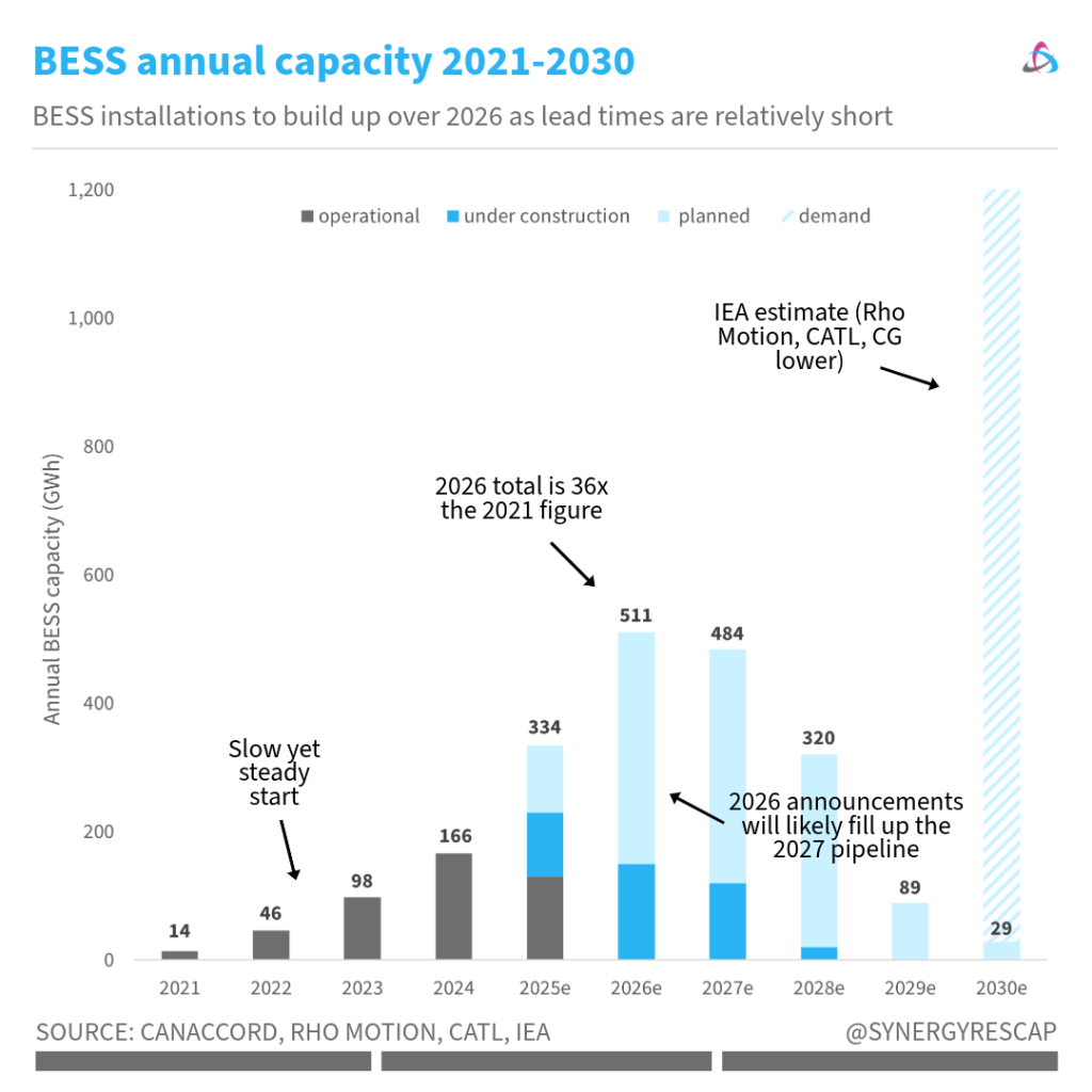 But BESS installations have relatively short lead times (6-18 months, depending on scale).