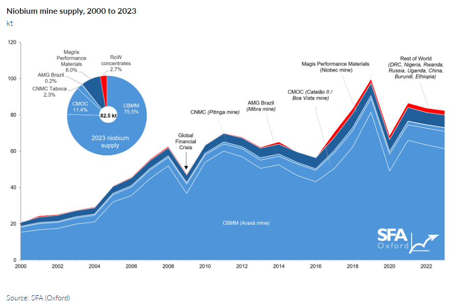 There is some truth to this question. However, the reality is more complex. Brazil is indeed the largest producer of niobium, with about 90% of the total, with only a handful of producers; Canada follows well behind. Geology has blessed Brazil with the right geology to identify this metal and privately owned companies have been dominating the space for years.